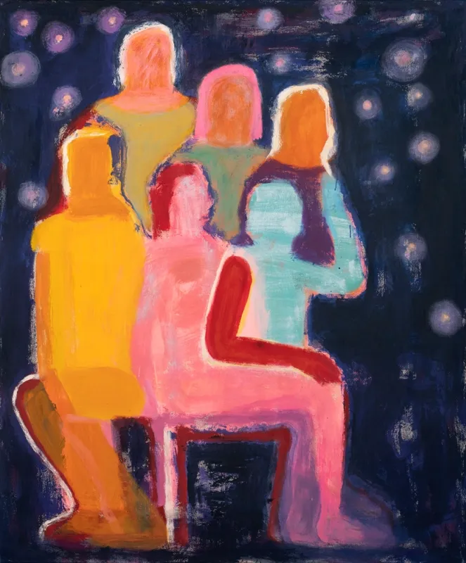 Katherine Bradford (b. 1942, USA) is a painter renowned for her luminous, dreamlike paintings that blend abstraction with figuration, often centered on themes of identity, community, vulnerability, and the quietly heroic.