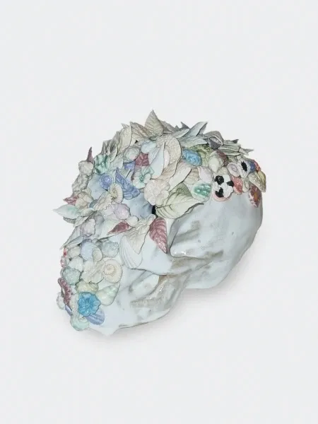 Klara Lilja, 'Skull' (2025). White clay, glaze, lacquer (stoneware). Courtesy of V1 Gallery and the artist.