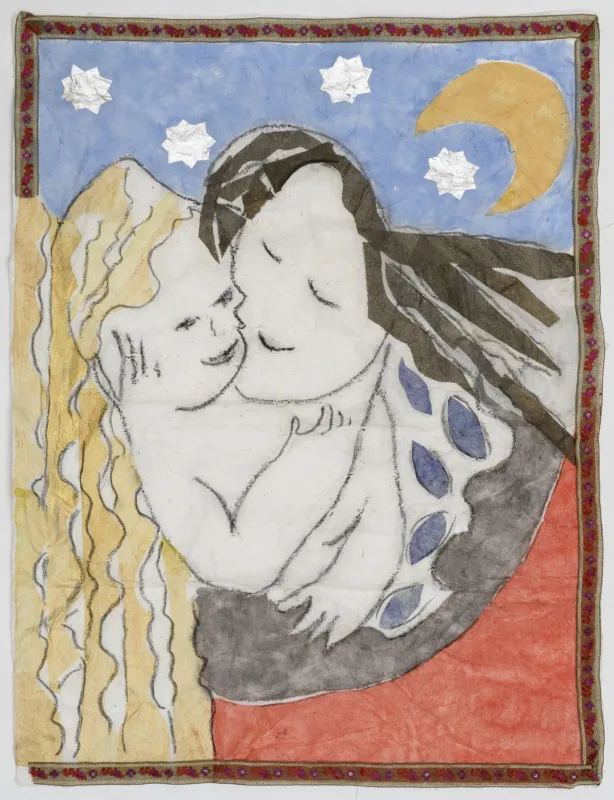 Isabella Ducrot’s practice is shaped by personal experience, particularly her extensive collection of textiles gathered over decades of travel across Turkey, India, China, Tibet, and Afghanistan. Beginning her artistic career later in life, she has spent almost four decades developing a practice in which fabrics are central, considered artworks in their own right. Ducrot combines these textiles with pencil, pastel, ink, and watercolour, often on rare or unusual papers, creating works that carry cultural, historical, and philosophical references.