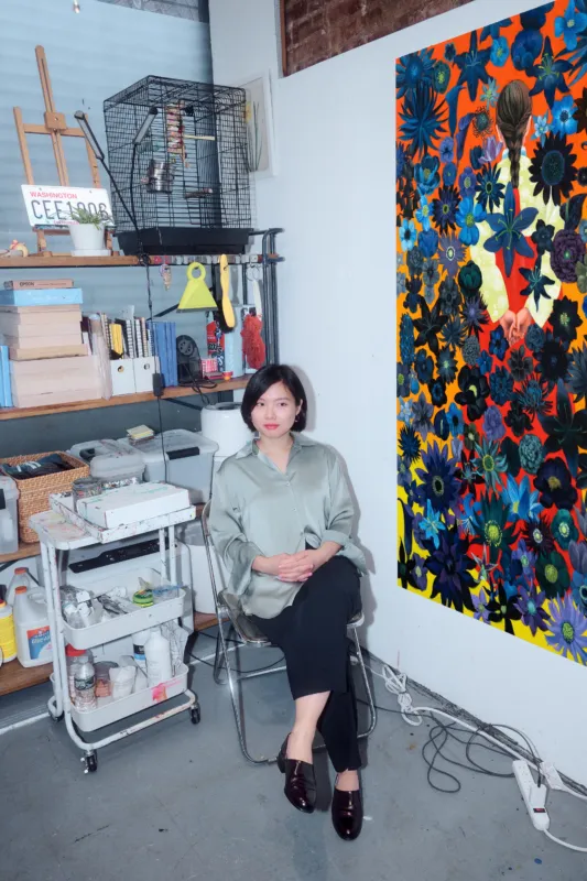 Sally J. Han, 'Calla Lilies Against the Golden Moon', (2024). Photo by Jason Mandella.